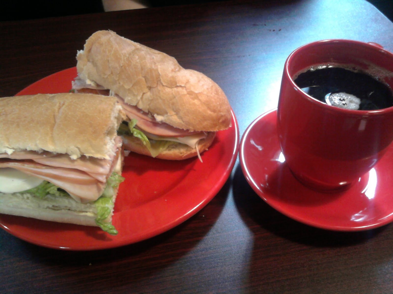 I was successful at beating the crowd on my third try. Had a great chicken cheese steak. Today was my second trip and there was no way I was finishing this turkey and swiss on multigrain. Maybe I'll save the rest for when we lose power this weekend and I'm bored of Hurricane Irene.